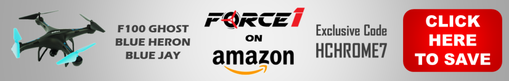 &tag=therevguy05-20&linkCode=ur2&linkId=1eb5b6e5b89cc343bb7e687db73a187d&camp=1789&creative=9325&index=electronics&keywords=force1%20drone” target=”_blank” rel=”noopener”>Force1 RC is perhaps the top seller of drones on Amazon. They’ve achieved this by offering high-quality quadcopters loaded with extras at good prices then following that up with excellent customer service. From easy to fly beginner drones, to HD GPS drones, to FPV racers Force1 has a wide range of drones. Keep reading to score exclusive discounts. Each month we’ll get a new code for discounts on various drones. This month the code is HCHROME7.